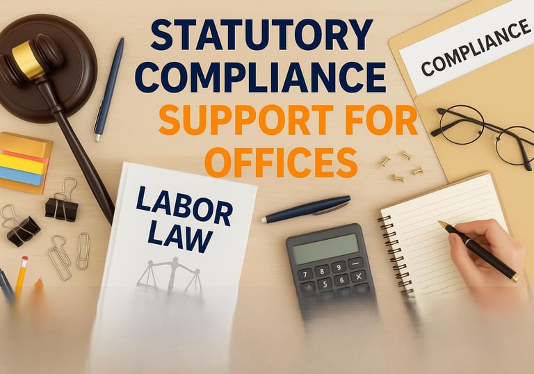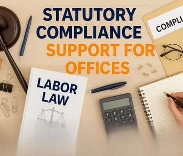 Our Statutory Compliance Support Services ensure that your office operations remain fully compliant with all applicable government laws, safety regulations, and statutory requirements. We help organizations avoid legal risks, penalties, and operational disruptions by managing compliance efficiently and professionally.